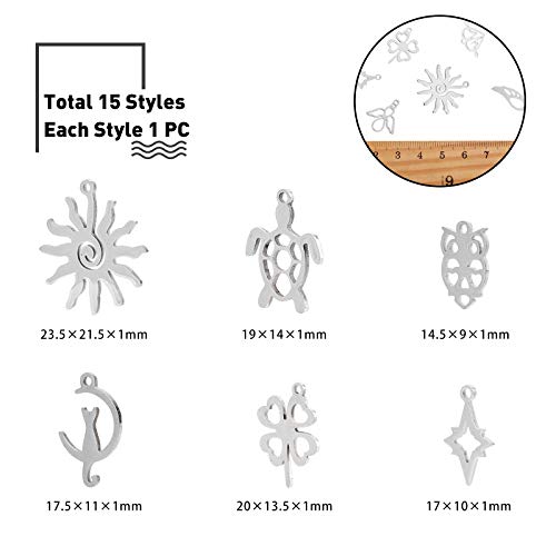 La confezione include: 15 ciondoli in acciaio inox in diverse forme e una scatola di plastica è inclusa per aiutarti a conservare e proteggere facilmente i gioielli.