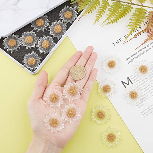 NBeads, 50 ciondoli a forma di girasole, in resina con retro piatto, cabochon in resina epossidica, con lamina dorata per la creazione di gioielli, scrapbooking