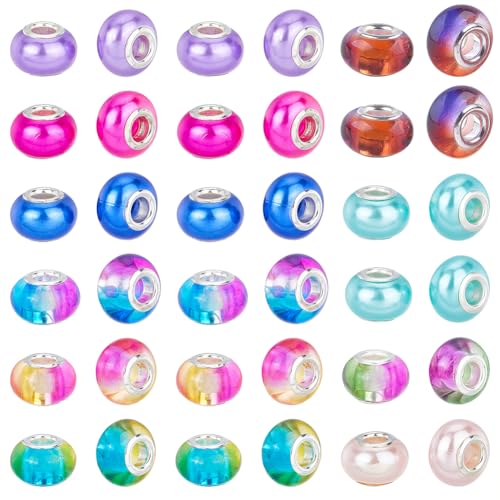 NBEADS 80pz 10 Colori Perline Rondelle Europee Foro Largo, Perline Trasparenti Bicolore Imitazione Resina Stile Perla Europei con Doppio Nucleo in Ottone Tono Argento per Creazione di Gioielli