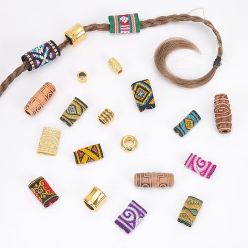 Stili diversi: contiene 11 pezzo di perline dreadlock in tessuto colorato, 20 ciondolo per perline per capelli in lega stile tibetano e 24 perline per capelli in resina, sembra bello e diverso, 17 stile nello stile, puoi scegliere e sostituire in base alle tue esigenze e abbinare ai tuoi outfit quotidiani