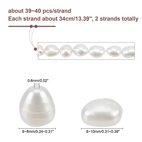 Contenuto della confezione: nella confezione sono presenti 2 filo di perle d'acqua dolce coltivate naturali, le perle di perle sono lunghe circa 0.31~0.39 pollice (8~10 mm), 0.24~0.31 pollice (6~8 mm) di diametro, foro: 0.02 pollice (0.6 mm);
