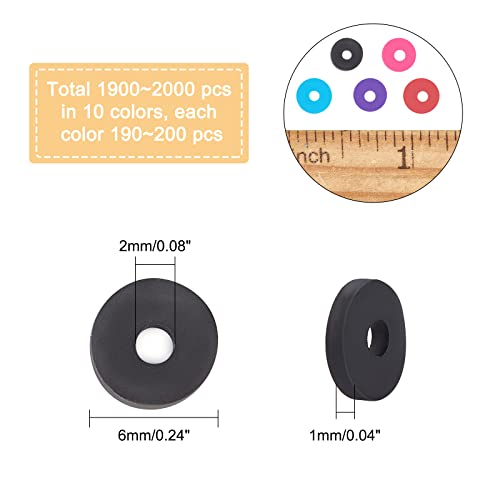 IL PACCHETTO COMPRENDE: 1900~2000 pz 10 colori perline di argilla per ogni scatola. Le perle piatte rotonde di argilla hanno un diametro di circa 6 mm, Foro: 2 mm.