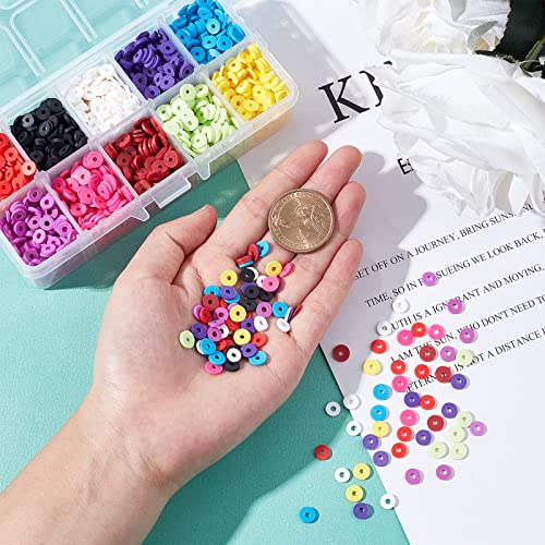 NBEADS Perline in Argilla Polimerica Fatte A Mano in 1900 Colori, Perline Distanziate Tonde Piatte da 6 mm per La Realizzazione di Gioielli Fai-da-Te, Foro: 2 mm