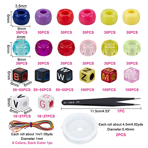 La confezione include: contiene circa 928 perline multicolore (circa 568 perline da lettera), 2 rotoli di filo elastico in cristallo e 8 colori in nylon, 1 pinzetta.