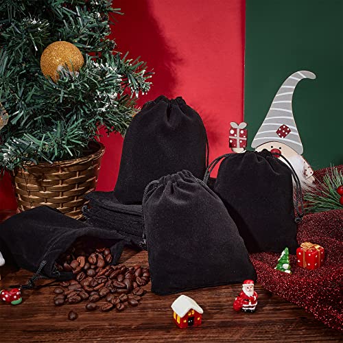 NBEADS 50 Pezzi Borse in Velluto, Sacchetti Regalo Piccolo in Velluto con Coulisse Borse in Stoffa per Imballaggio Bomboniera per Matrimonio, Nero, 12x10cm