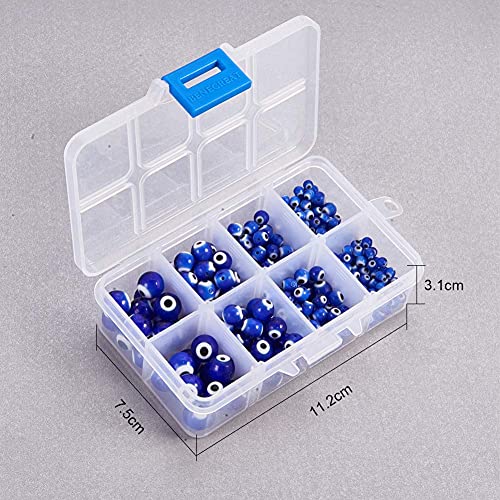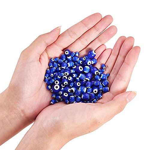 NBEADS 390 Pezzi 4 Dimensioni Perline per Malocchio, 4mm/6mm/8mm/10mm Perline Rotonde Fatte a Mano con Occhi Azzurri per Fare Gioielli Fai da Te, Foro: 1 mm