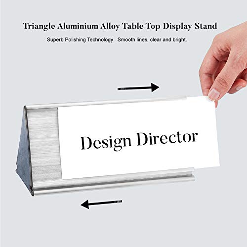 NBEADS 1 Set Porta Targhetta In Metallo, Espositore Con Nome In Argento A Triangolo A Doppia Faccia Da 8.4x20 cm In Lega di Alluminio per La Produzione di Targhe Da Ufficio Da Ufficio