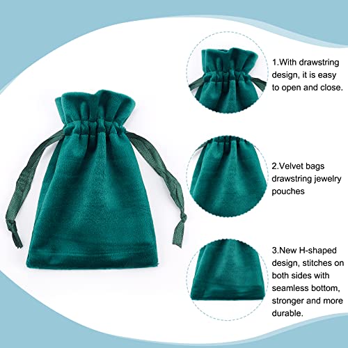 NBEADS 12pz Sacchetti di Velluto Verde Scuro, Sacchetti Regalo Rettangolari per Gioielli con Coulisse Da 12x9 cm per Bomboniere Nuziali Bomboniere