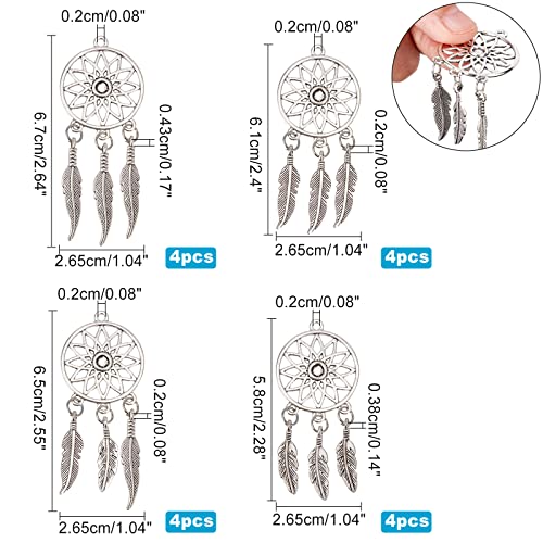 NBEADS 16 pz 4 Stili Ciondoli Acchiappasogni in Stile Tibetano, Charms Dreamcatcher con Ciondoli Grandi in Lega d'Argento Antico per Gioielli Fai-da-Te con Portachiavi, Collana, Portafogli, Appeso