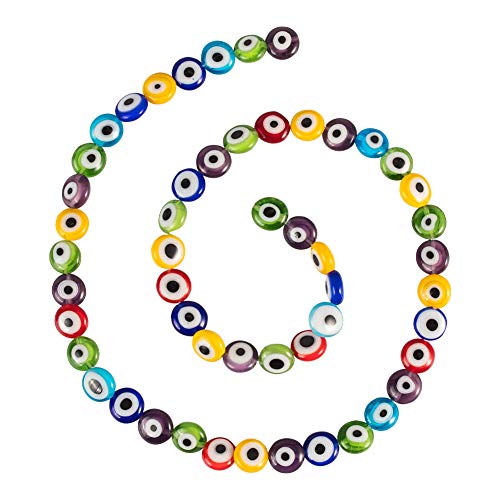 NBEADS 1 Strand (Circa 51Pcs) Colore Misto Piatto Rotondo Handmade Evil Eye Lampwork Perline Charms Spacer Beads Fit Bracciali Collana Creazione di Gioielli