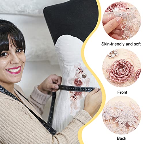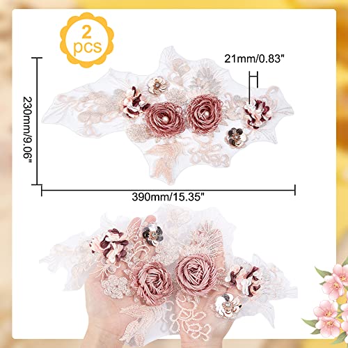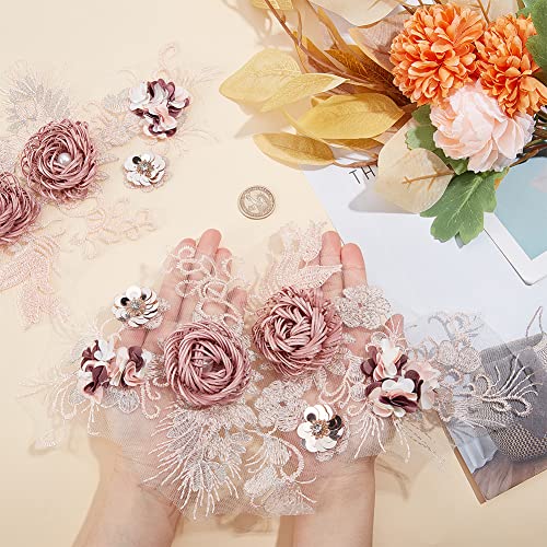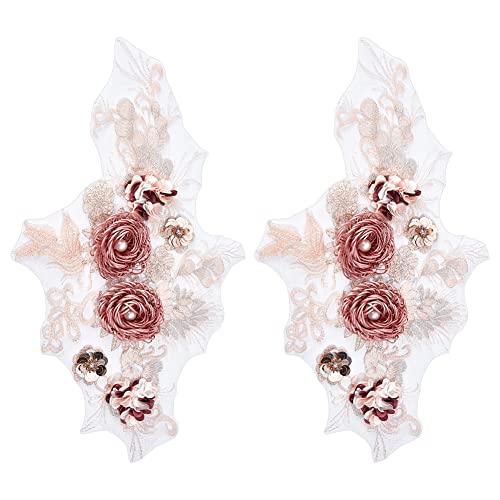 NBEADS 2pz Toppe per Applicazioni In Pizzo Rosa Corallo 3D, Toppa In Pizzo con Fiore di Corallo con Strass e Paillettes Applique Ricamata Floreale Cucito su Toppe per Decorazione di Abiti Da Sposa