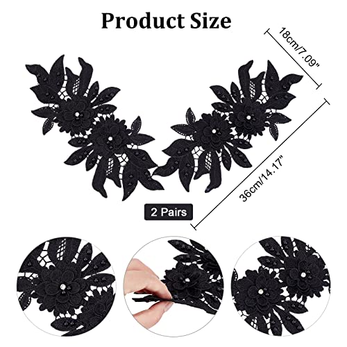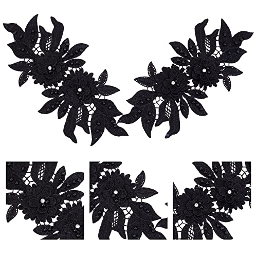 NBEADS 2 Paio Toppe in Pizzo 3D, Nero Sew On Ricamo Pizzo Fiore Patch Motivo Floreale in Rilievo Strass Pizzo Tessuto Perla Appliques per Cucire Abito da Sposa Sposa Scarpe Decor