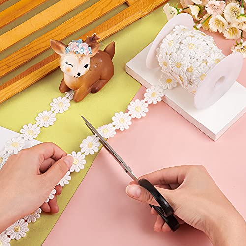 NBEADS 7 yarde/rotolo Nastro di Rifinitura per Bordi di Fiori Margherita, Appliques In Nastro di Fiori In Poliestere Largo 25 mm con Rocchetto di Plastica per Cucire Ricami Artigianali, Giallo