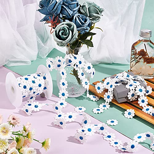 NBEADS 7 yarde/rotolo Nastro di Rifinitura per Bordi di Fiori Margherita, Appliques In Nastro di Fiori In Poliestere Largo 25 mm con Rocchetto di Plastica per Cucire Ricami Artigianali, Ciano Scuro