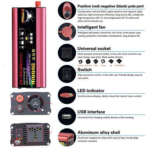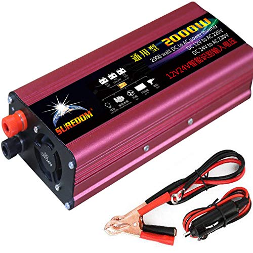 NBQABN 2000W Invertitore di Potenza Picco 4000W Convertitore Sinusoidale Modificato da 12V 24V a 220 V CA con Adattatore Accendisigari USB in Clip Coccodrillo Auto,12vTo220v
