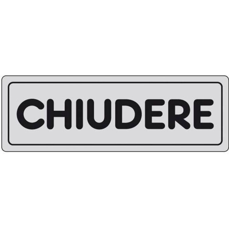 Cartello Chiudere. Adesivo bianco. Dimensioni 150 x 50 mm. L'offerta ed i prezzi si riferiscono a 10 pz. per confezione