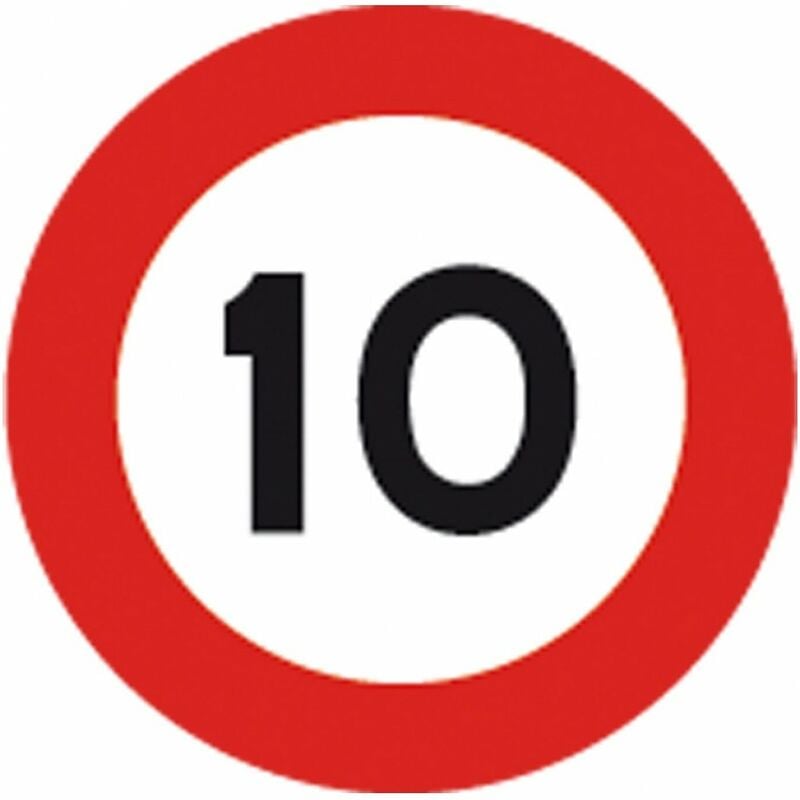 In plastica, pellicola rifrangente Classe 1, rispettano il Decreto Ministeriale del 10 Luglio 2002, regolamento di esecuzione e di attuazione del Codice della Strada. FIG. 50 ART. 116 LIMITE MASSIMO DI VELOCITA' 10 KM/H Dimensioni Ø cm. 60