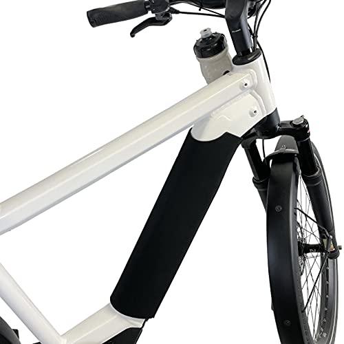 Coperchio batteria multifunzione nel tubo inferiore, adatto a tutti i produttori e design più diffusi con una lunghezza della batteria fino a 49 cm (inclusa la batteria Bosch 625). Con funzione di protezione migliorata per un uso estremo. Adatto per telai di circonferenza 30 cm (diametro 10 cm) fino a 37,5 cm (diametro 16 cm), neoprene elasticizzato