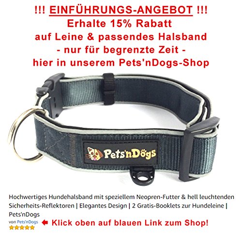 Pets'nDogs, guinzaglio per cani (2 m) premium con fodera in neoprene fatta a mano e riflettori sicuri 3m, perfetto per cani di grossa taglia, design elegante