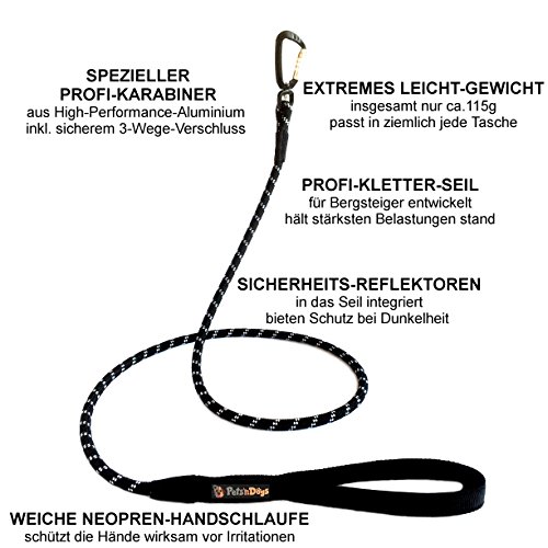 Pets'nDogs, Guinzaglio per cane premium, professionale, ad alte prestazioni, con moschettone inclusocon 2 libretti (lingua italiana non garantita), in neoprene molto leggero (circa 115 g)