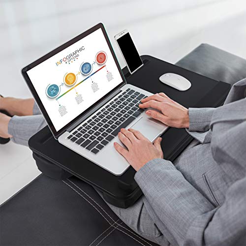 NEARPOW Supporto per Laptop con Cuscino per Divano letto, PVC Pelle del desktop, Tavolo da letto portatile Cuscino Supporto per tablet Telefono, Striscia Antiscivolo,Adatto per Laptop Fino a 17"(nero)