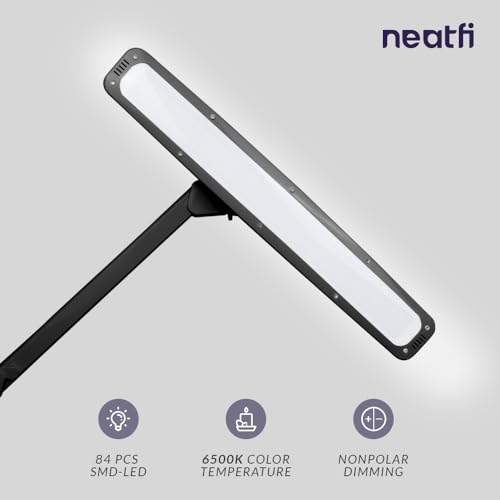Neatfi Lampada da lavoro Elite HD XL, 1.600 lumen, 84 LED SMD, temperatura colore 6500K, lampada da scrivania luminosa, funzione dimmer non polare (Non-CCT con Morsetto, Nero, 58 CM)