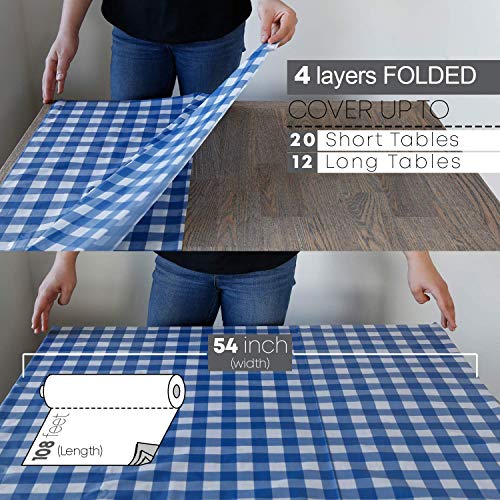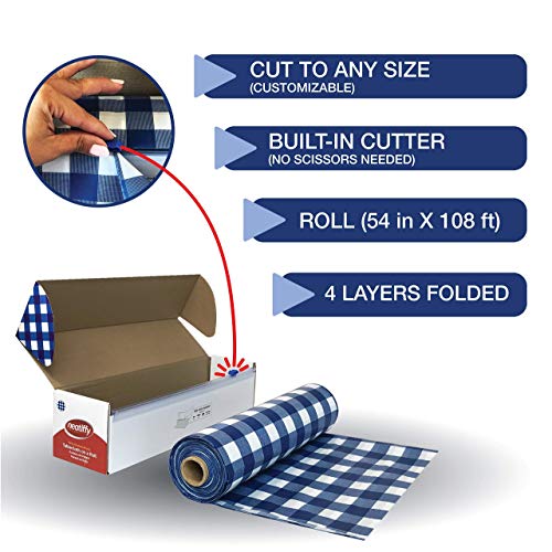 Neatiffy 137,2 cm x 32,9 m Rotolo Di Tovaglie Di Plastica Usa E Getta, Per Picnic, Feste, Banchetti, Blue Gingham