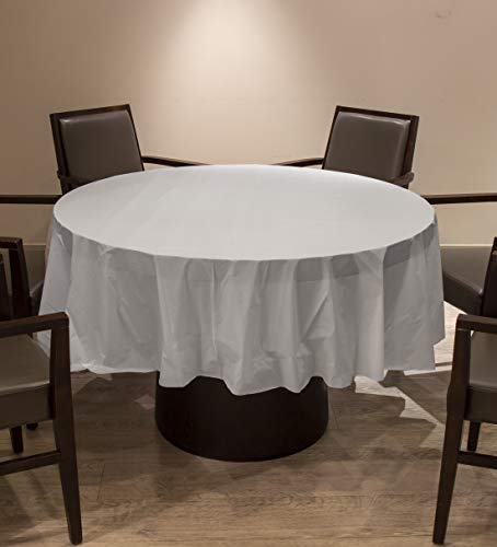 Neatiffy Tovaglia usa e getta rotonda in plastica da 213 cm, per picnic, feste, banchetti, tovaglia per tavoli rotondi da 213 cm, Bianchi