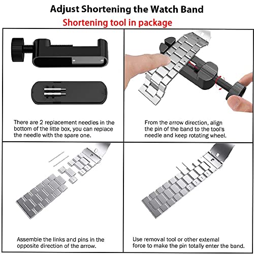 Lunghezza della fascia regolabile: la band è dotato di strumento di rimozione che vi rende possibile regolare la lunghezza della fascia al polso. Adatto al polso 6.89"-9.64" (175mm-245mm). Fino a 6 collegamenti possono essere rimossi.