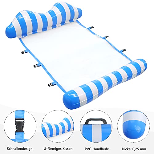 3. Comodo e durevole: questa amaca gonfiabile è realizzata in PVC ecologico di alta qualità. È facile da gonfiare e si sgonfia facilmente per garantire una conservazione rapida e compatta. Morbida e comoda amaca a rete con cuscini gonfiabili su quattro maniglie (due sono rimovibili).