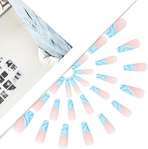 Le unghie finte con linee blu bara hanno 24 diverse dimensioni, puoi scegliere liberamente la taglia più adatta a te.