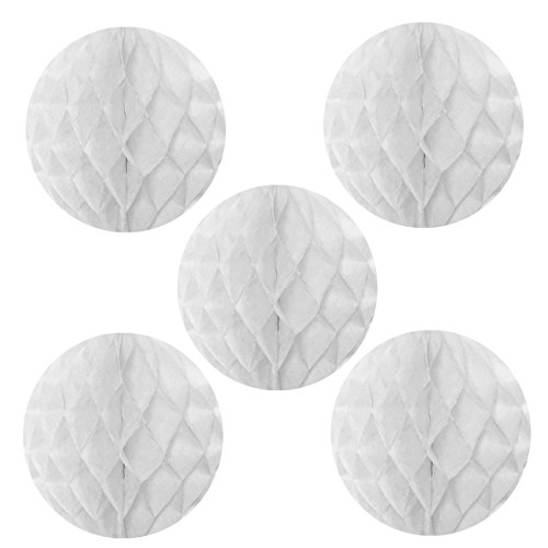 NectaRoy 10" Carta Velina a Nido D'Ape Palla Di Carta di Nozze Decorativo Decorazione Decorazione del Partito Bambino Doccia per Ghirlanda 5 pezzi (Bianca)