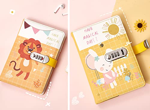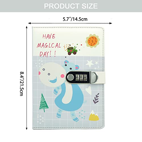 NectaRoy Diario dei Cartoni Animati per Bambini, Diario di Viaggio in Pelle, A5 Taccuino Simpatici con Chiusura a Combinazione, Quaderno Scrittura con Passante per Penna&Tasca per Carte, 215x145mm