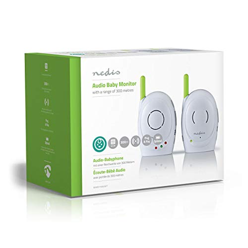 Nedis Audio Baby Monitor - Telefoni wireless per bambini con interfono e portata 300 m - Set di 2 - Verde/Bianco