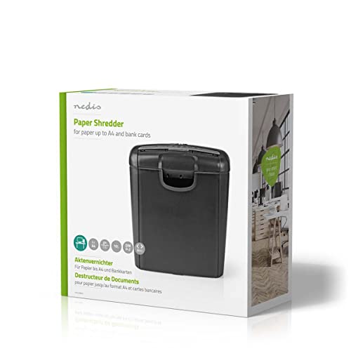 Nedis - Distruggi Documenti - 6 Pagine A4 Contemporaneamente - Professionale - 190 W - Standard di Sicurezza - Tagliar a Strisce di 6 mm - Taglierina per Carta - Trita Documenti - 10 L - Nero