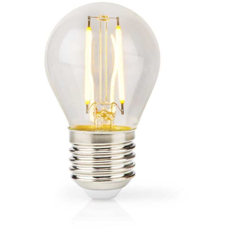 LAMPADINA A Filamento LED a forma G45 con attacco E27 da 250 lumen e un basso consumo di 2W in sostituzione di una tradizionale lampada ad incandescenza da 26W. Questa lampadina LED ad alta efficienza energetica diffonde una luce bianca calda con una temperatura di colore di 2700 KelvinNumero di lampade nella confezione: 1 PezzoNumero di cicli di commutazione: 50000 Cicli di commutazioneFinitura lampada: TrasparenteIntervallo di temperatura ambiente: 40 - 60 °CDiametro lampadina: 45 mmDimmerabile: NoClasse energetica: EConsumo energetico per 1000 ore: 2 kWhPotenza equivalente: 26 W Attacco: E27Altezza lampadina: 75 mmTensione in ingresso: 220 - 240 V CA 50/60 HzUniformità colore (SDCM): ? 6Temperatura colore: 2700 KIndice di resa cromatica (Ra): 80Contenuto di mercurio della lampada: 0 mgForma della lampada: G45Colore della luce: Bianco caldoFattore di mantenimento del flusso luminoso: 93,11%Materiale alloggiamento: VetroConsumo energetico massimo: 2 WDurata nominale della lampada