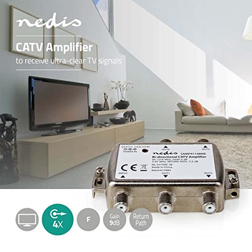 NEDIS SAMP41148ME Amplificatore CATV | Guadagno: 9 Db | 85-1218 MHz | Numero di uscite: 4 | Percorso di Ritorno | Argento