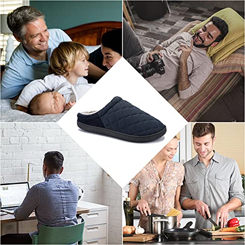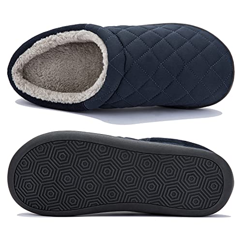 NeedBo Pantofole da Uomo Pantofole in Memory Foam Calde e Comode Foderate in Pile Antiscivolo a Quadri Pantofole da Casa Interno Esterno,Blu Navy,4142 EU