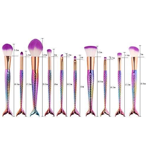 NEEDOON 10 Pezzi Pennelli Trucco, Sirena fondotinta fard ombretto cipria creme Make Up brushes (B)