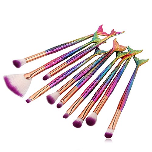 NEEDOON 10 Pezzi Pennelli Trucco, Sirena ombretto Eyeliner Make Up brushes (B)