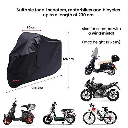 Dimensioni copertura scooter: (LxPxA): 230 cm x 95 cm x 125 cm, peso: 550 grammi