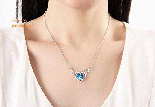 NEEMODA Collana Donna Ciondolo Cristallo Blu Pendente Cuore Ali d'Angelo Gioielli Regali per lei Compleanno Anniversario San Valentino Natale