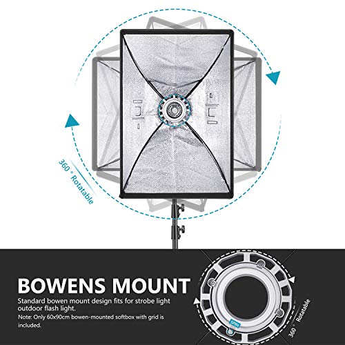 Neewer 10085819 - Ombrello rettangolare per studio foto, tipo Speedlite Softbox con griglia per ritratti, 60x90 cm