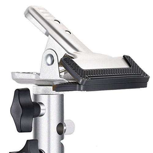 STRUTTURA ROBUSTA & RESISTENTE: La pinza è dotata di 2 attacchi 5/8” sulle 2 estremità, e via la vite adattatore 1/4”- 3/8”, può essere montata su qualsiasi stativo. È sufficientemente forte per sostenere in modo efficace un riflettore, e grazie alle ganasce in gomma alla bocca, non graffia o taglia il riflettore.