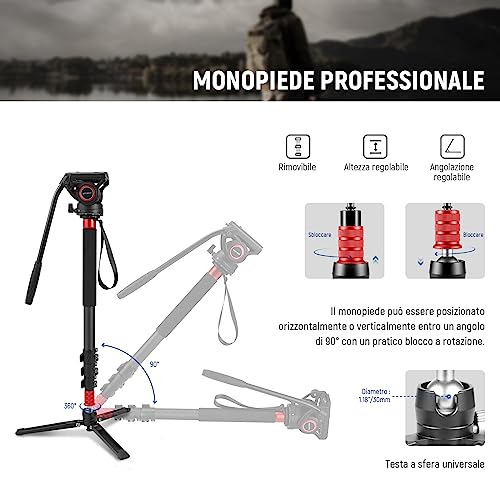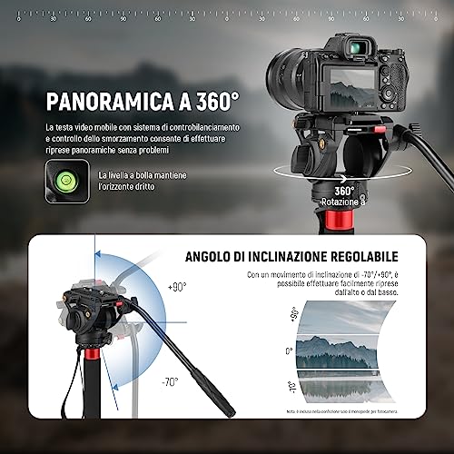 [Fluida Testa per Video Aggiornata & Professionale] Il monopiede è girevole a 360° in senso orizzontale ed a -70°/+90° in verticale con sistema di bilanciamento e controllo dello smorzamento. Adotta le viti 1/4” e 3/8” per il montaggio. La filettatura 1/4” laterale serve al fissaggio di monitor esterno, luce LED e braccio magico. La maniglia è rimovibile, il livello a bolla mantiene l'orizzonte dritto e la chiave esagonale magnetica a forma L è inlcusa per una regolazione più comoda.