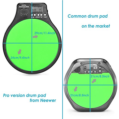 Neewer 3-in-1 Drum-pad Allenatore per Batteria Digitale Portatile con LCD Display Metronomo per Esercizi con Tempo, Battito e Ritmo Regolabile (Verde)