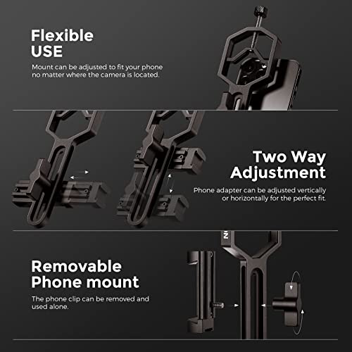 [Solida Struttura in Metallo] Costruito con lega di alluminio resistente, l'adattatore per montaggio di telescopio su smartphone è in grado di resistere ad anni di utilizzo e alle condizioni atmosferiche difficili.
