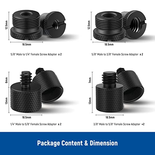 NEEWER 8pz Vite Adattatore per Stand di Microfono, 5/8” Femmina a 3/8” Maschio, 3/8” Femmina a 5/8” Maschio, 5/8” Femmina a 1/4” Maschio, 1/4” Femmina a 5/8” Maschio, per Stand Asta di Microfono