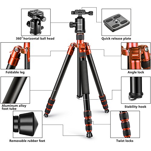 Neewer in lega di alluminio 165,1 cm/165 centimeters treppiede monopiede, 360 gradi testa a sfera, 1/10,2 cm piastra a innesto rapido e livella a bolla per fotocamere DSLR, camcorder, carico fino a 15 kilogram/15 kilograms (arancione)