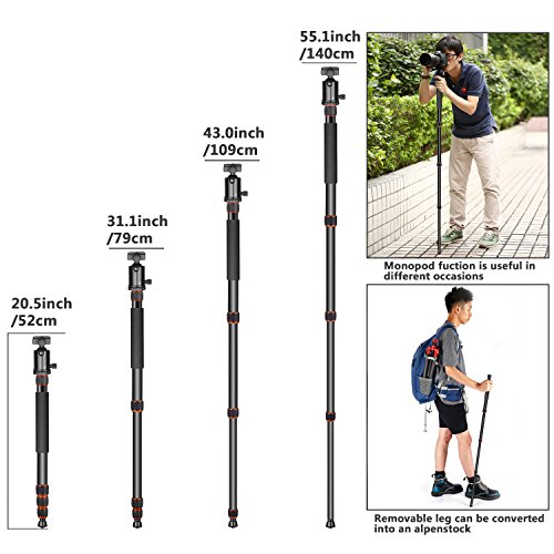 Treppiedi 2-in-1: una delle 3 gambe può essere rimossa da usare come un monopiede o un alpenstock.